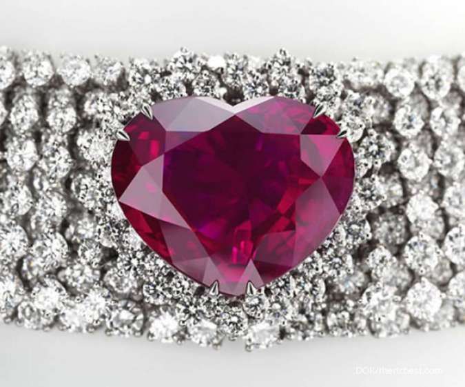| Keistimewaan | : | Garrard's Heart of the Kingdom Ruby, adalah salah satu kalung termahal di dunia. Terdiri dari potongan rubi Burma berbentuk hati seberat 40,63 karat yang dikelilingi oleh 155 karat berlian. Ruby rubi Burma adalah salah satu varietas ruby yang paling dicari di dunia, karena warnanya yang merah darah. Permata ini sangat berharga, karena sangat langka dengan ukuran batu ruby yang terkandung dalam kalung ini, sesuai namanya dibuat oleh Garrard & Co., perusahaan perhiasan tertua di dunia yang bermarkas di Inggris. Gerrard & Co. juga pembuat Mahkota Perhiasan Kerajaan Inggris dari tahun 1843 hingga 2007, mahkota Ratu Victoria dan termasuk pembuat piala Liga Premier Inggris. |